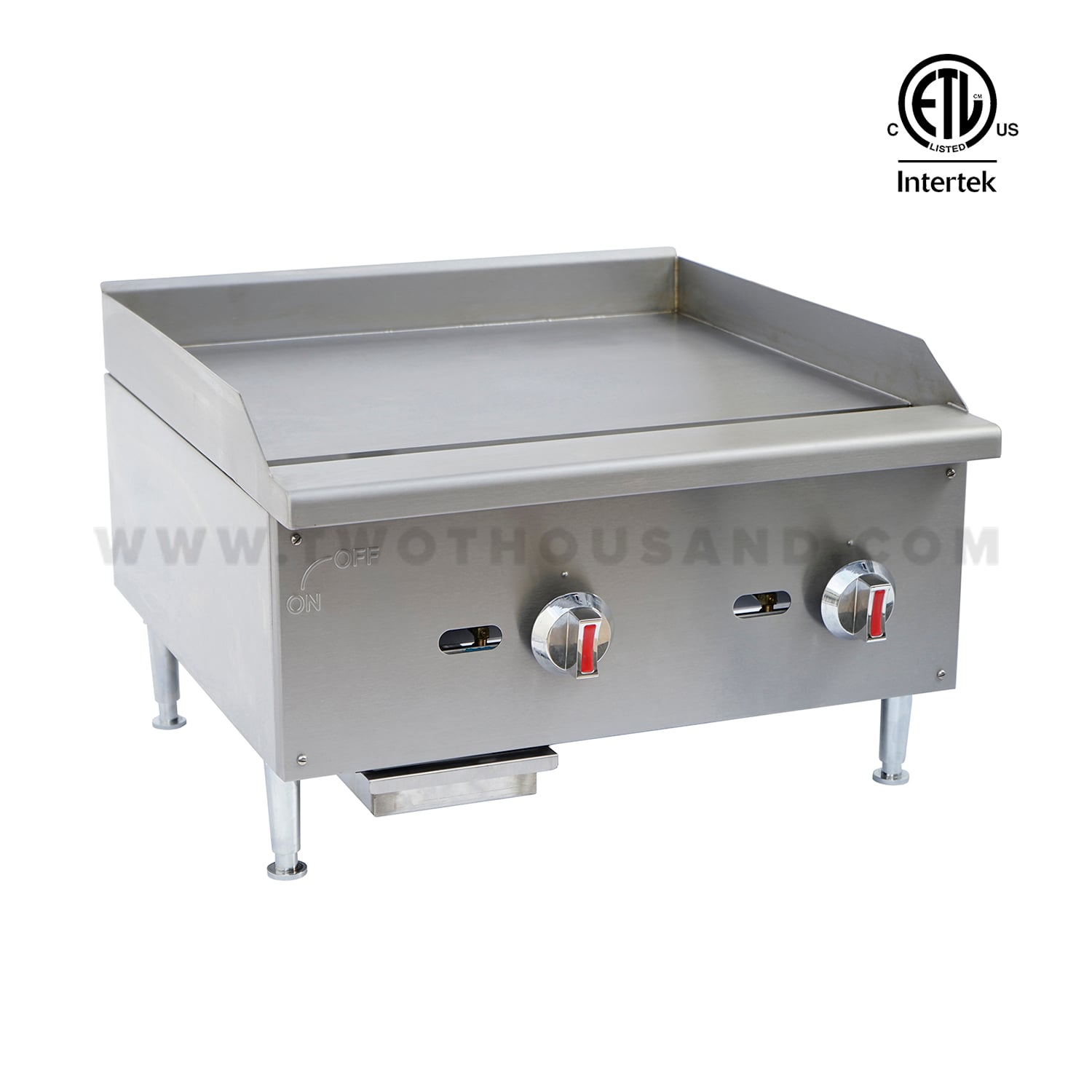 Carrying both ETL and CE certifications, this gas griddle meets strict international safety and sanitation requirements. The smooth surfaces and accessible grease trough speed up the daily cleaning process. Kitchen managers can install this unit knowing it complies with commercial fire and health codes, protecting both the facility and the operating staff.
