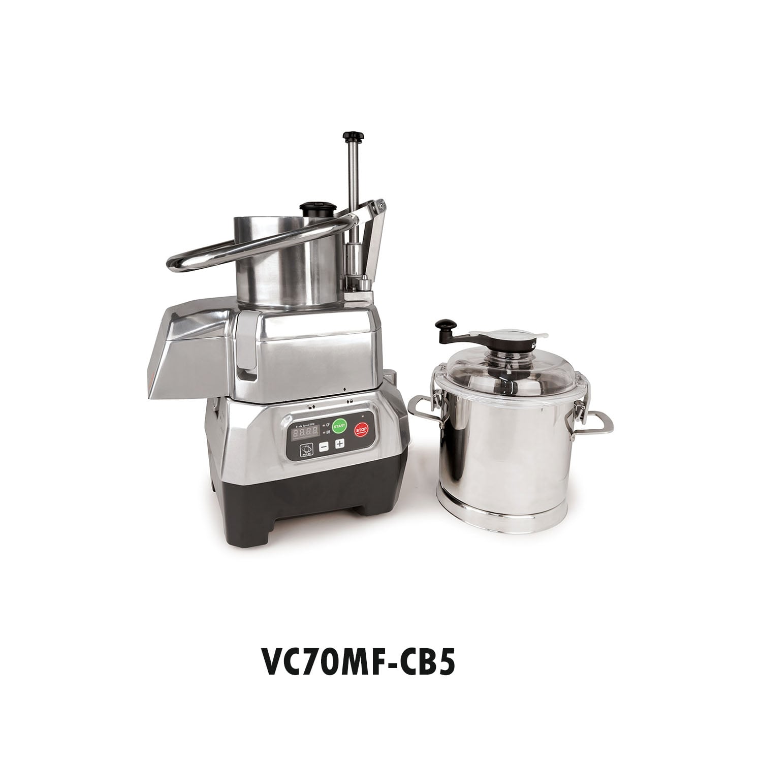 The VC70MF Food Processor equips commercial kitchens with a 1500W motor to process heavy volumes of vegetables, meats, and dough. Built with a cast aluminum housing, this machine withstands daily use in demanding food prep environments. It includes five standard discs, allowing kitchen staff to slice, grate, and shred ingredients immediately upon setup.