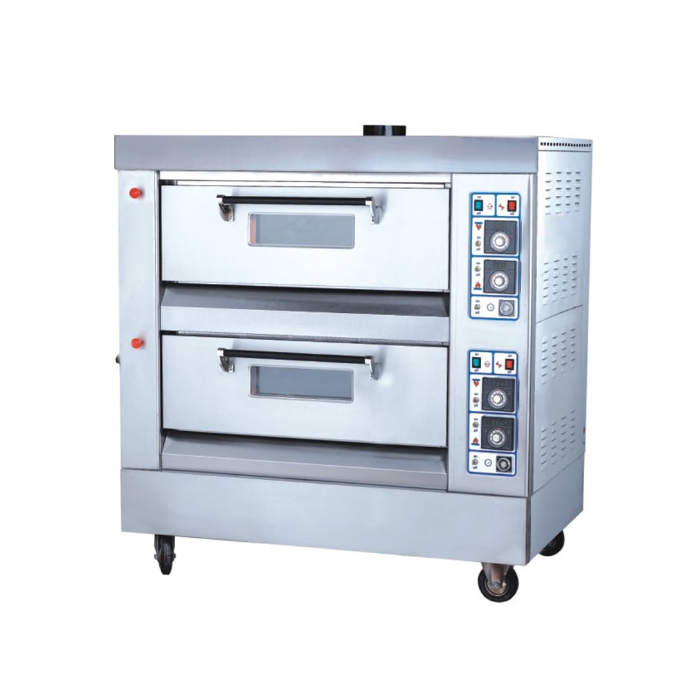 The TT-O37B gas oven provides two independent baking decks, each accommodating two 600x400mm trays. This configuration allows chefs to bake four trays simultaneously, doubling output during peak service hours. The stainless steel front withstands the heat and moisture of a busy kitchen, while the gas-powered system ensures rapid temperature recovery for consistent results across multiple batches of bread or pastries.