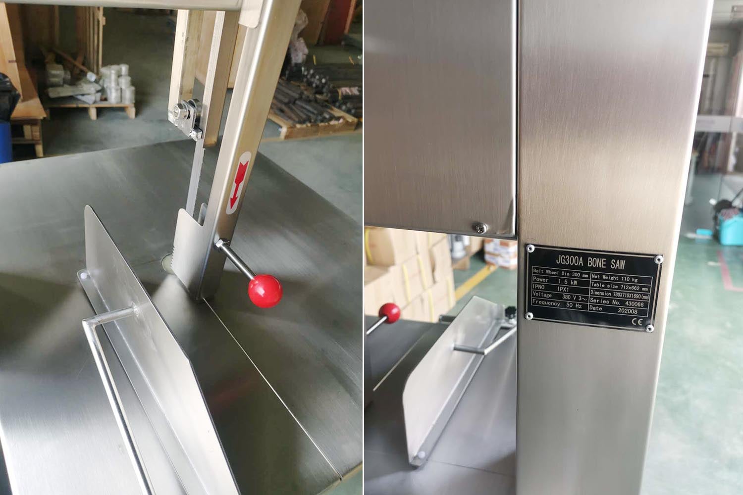 In conclusion, the Meat Bone Saw JG300A represents a robust and efficient solution for businesses in the food industry seeking to streamline their meat and bone cutting processes. With its high-power copper motor, high-quality bandsaw blades, and reliable buttons with protection, this machine not only boosts productivity but also upholds the standards of precision and safety essential in food processing environments. Whether in a bustling restaurant kitchen or a large-scale food processing facility, the Meat Bone Saw JG300A stands as a testament to innovation and reliability in the realm of meat cutting equipment.