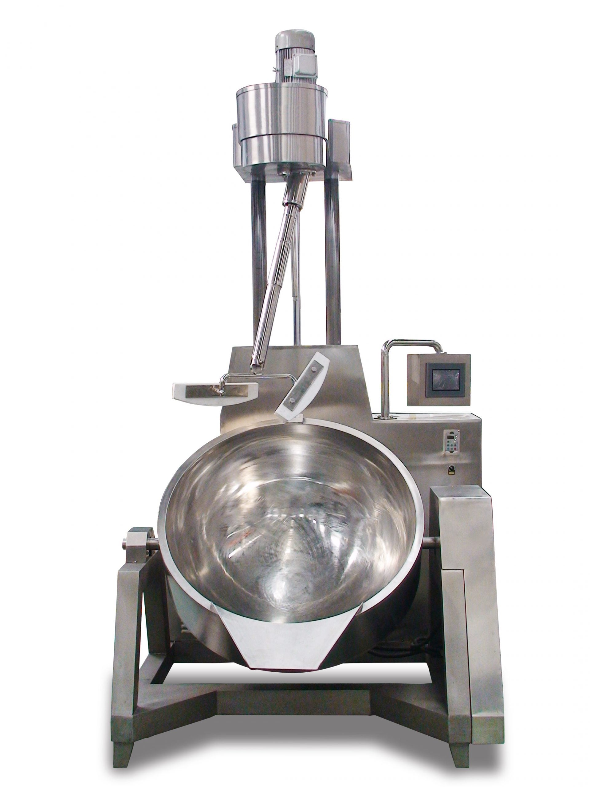 A 2.25Kw motor drives the agitator with adjustable speeds to suit various viscosities. Reinforced scrapers clean the inner walls continuously, preventing ingredients from sticking or burning during long cook times. This automated mixing handles heavy loads, such as curry pastes or bean fillings, ensuring a homogeneous texture. By replacing manual stirring, the agitator reduces physical strain on staff and guarantees consistency across large production batches.