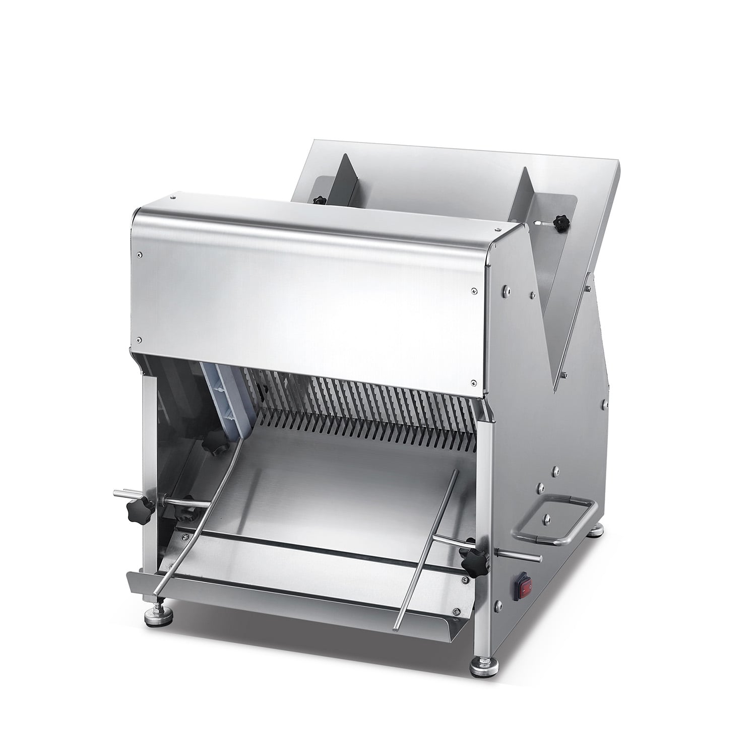 Kitchen staff can operate this machine with minimal training. The design secures the loaf in place before the blades engage, protecting the operator’s hands from moving parts. Metal surfaces wipe down quickly, helping the team maintain hygiene standards between shifts. The structure prevents dough and crumbs from accumulating in hard-to-reach crevices, simplifying end-of-day cleaning.