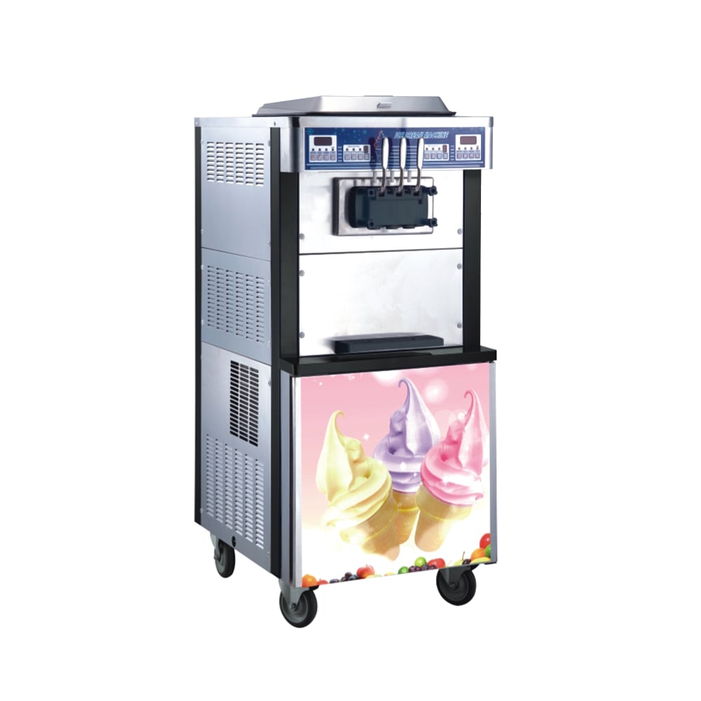 Equipped with a robust 2*2.6 KW power system, the unit freezes liquid mix rapidly to create a smooth texture. The dual refrigeration setup ensures that the product remains firm, even when ambient temperatures rise in hot commercial kitchens. The independent cooling cycles protect the motor from strain, extending the equipment’s lifespan while maintaining the correct viscosity for soft serve.