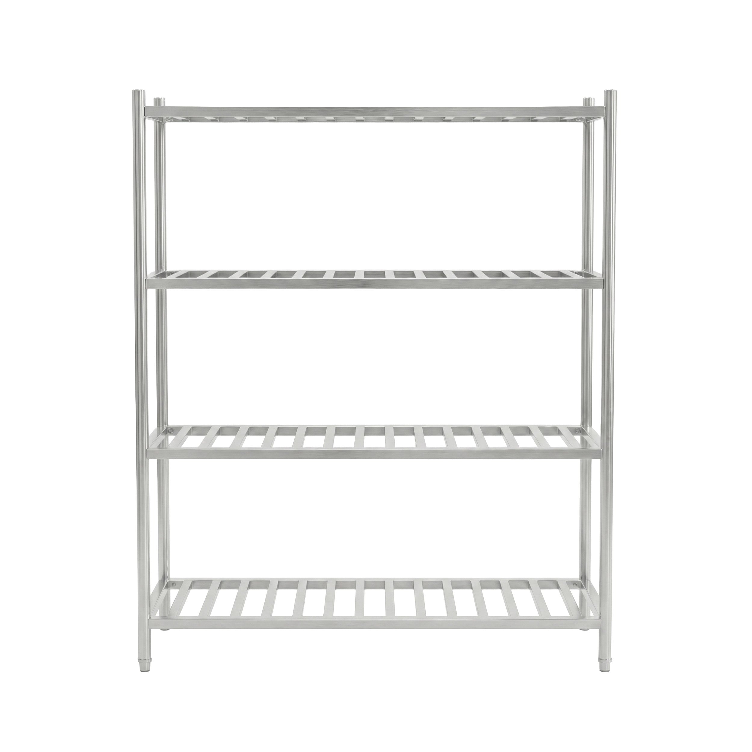 Built with 1.2mm thick stainless steel, this shelving withstands the daily impact of heavy stock pots and bulk flour bins. The non-porous surface resists corrosion and wipes clean instantly, maintaining hygiene standards in humid dishwashing zones or cold storage rooms. You can select between AISI 201 or 304 grades to match your specific kitchen environment.