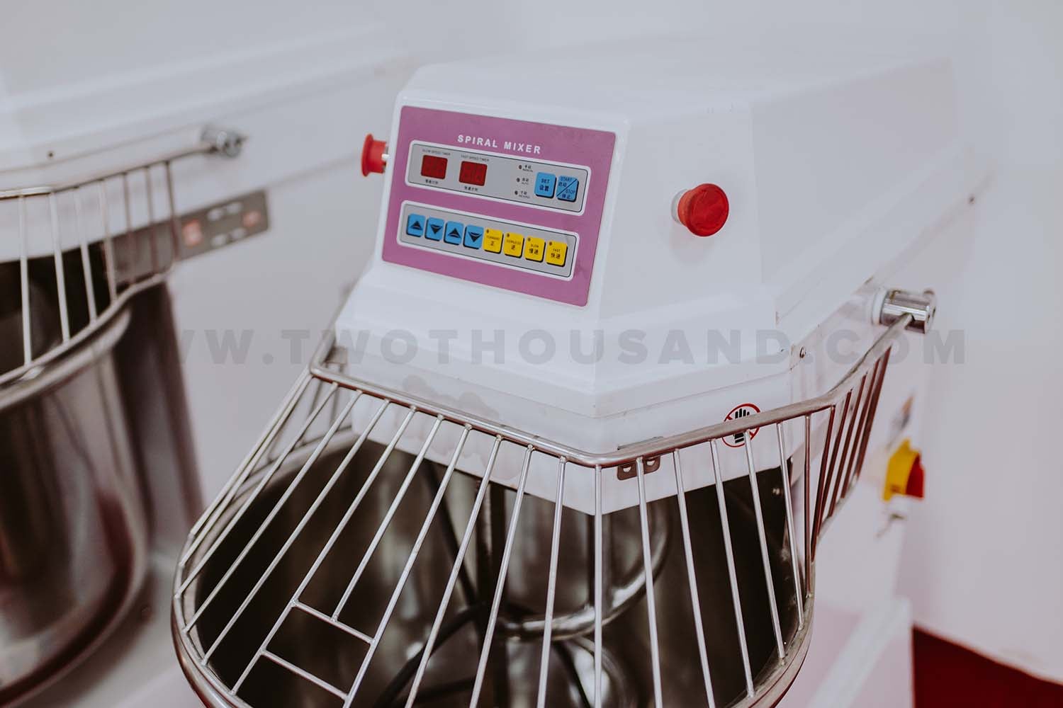 The 40L Double Speed Digital Spiral Dough Mixer (HS40AD) processes up to 12.5 kg of flour per batch. Built for commercial bakeries and pizzerias, this 296 kg machine combines a 3.3 KW motor with a digital control panel to knead heavy dough consistently. It handles bread, pizza, and pastry dough while fitting securely into standard kitchen production lines.