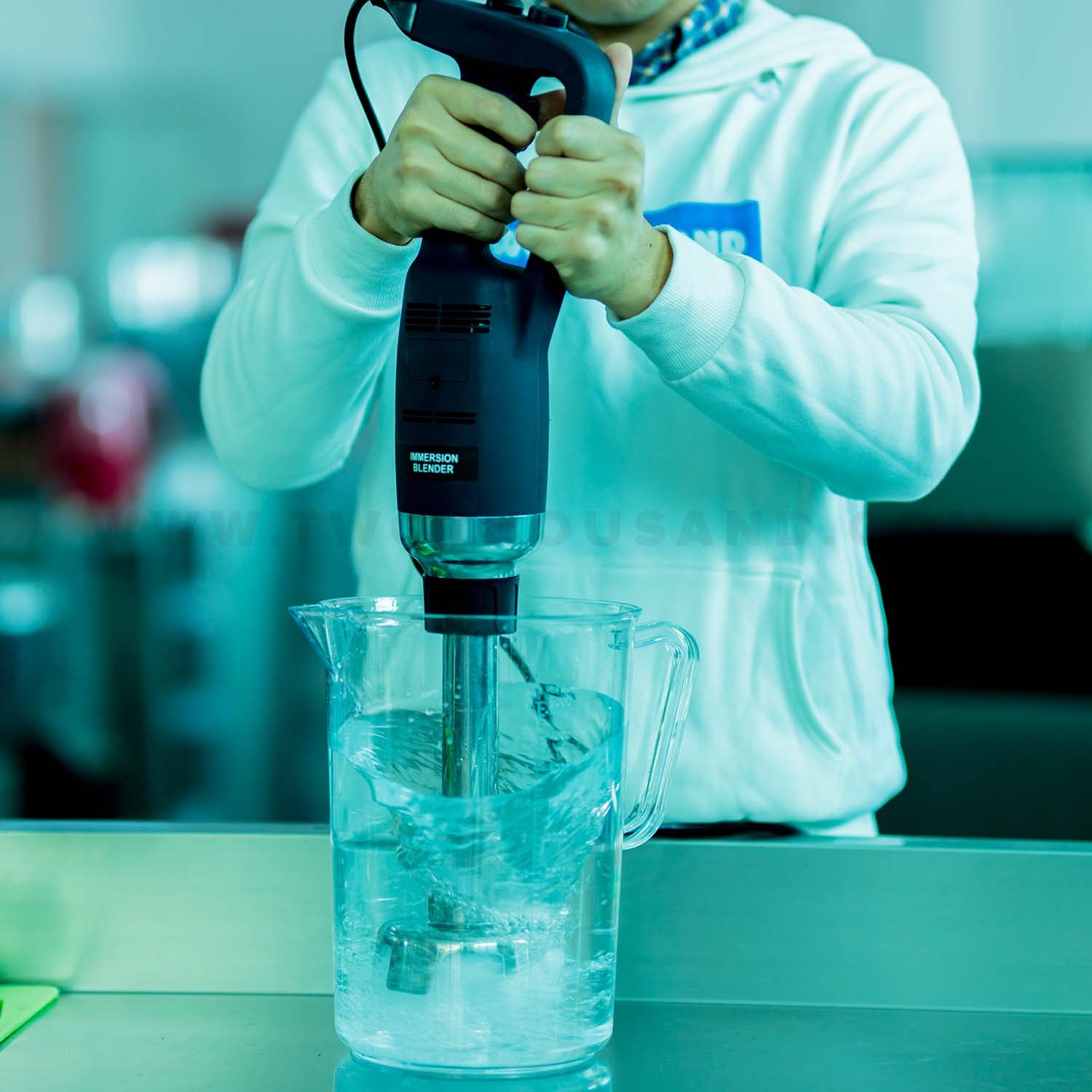The motor block connects to different shafts and whisks via a quick-lock mechanism. Staff switch tools in seconds to transition from pureeing tomato sauce to whipping cream. This design reduces equipment costs and saves storage space in small bakery shops.
