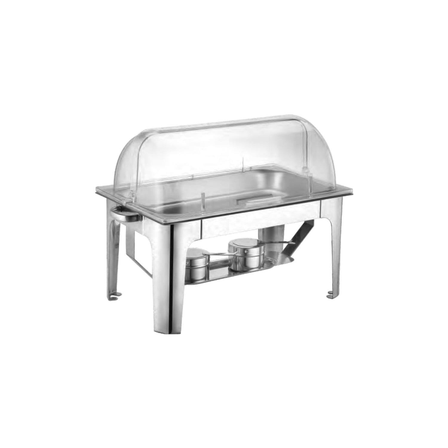 Built from food-grade stainless steel, the chafer resists corrosion from acidic foods like tomato sauces and citrus marinades. The smooth metal surface wipes clean quickly after service, preventing food residue buildup. This durable frame withstands the daily wear of transport between the kitchen and the dining room.