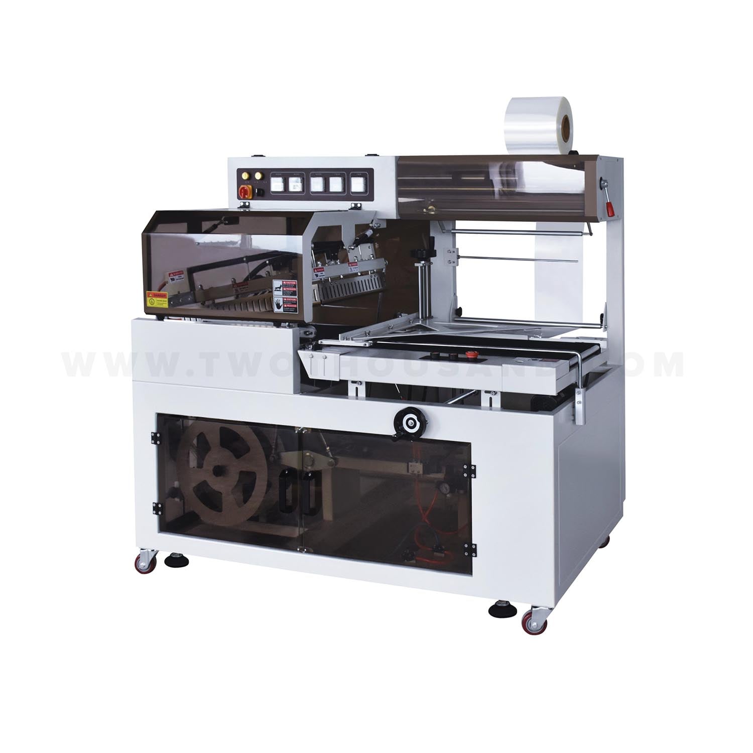 With a sealing area of 560×440 mm and a maximum packaging height of 135 mm, this system accepts a wide range of product dimensions. The shrink tunnel entrance measures 450×220 mm, allowing passage for items ranging from small sauce bottles to larger gift boxes. This adaptability supports facilities that package multiple product lines on a single machine.