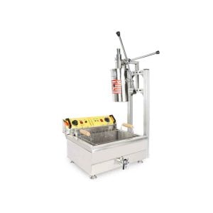 A Churro Machine is a specialized piece of equipment designed for commercial kitchens, bakeries, food trucks, and other food service establishments to efficiently produce churros, a popular fried dough pastry often enjoyed as a snack or dessert. These machines are equipped with extrusion mechanisms that shape the churro dough into the classic long, ridged shape before frying, ensuring consistency and quality in each churro produced.