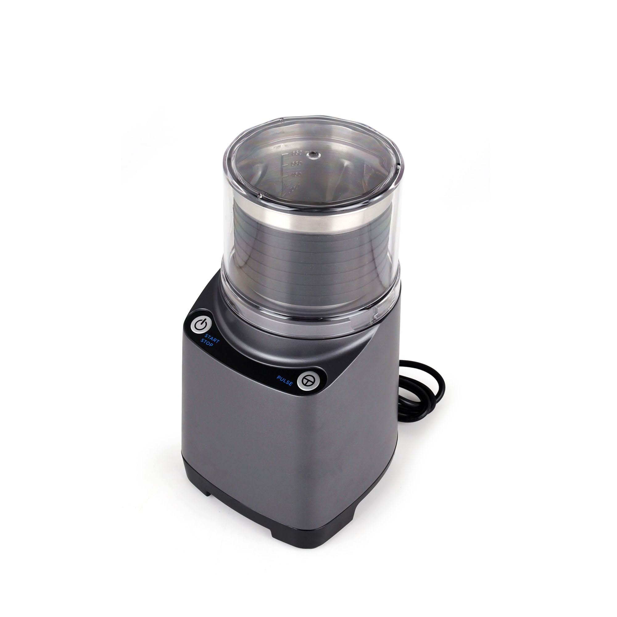 The unit includes a second 750ml stainless steel grinding bowl complete with a tight-fitting storage lid. Kitchen managers can grind different spice blends without stopping to wash a single bowl in the middle of prep. The included lid allows staff to store freshly ground cumin or coriander directly on the shelf, locking in aroma and preventing cross-contamination.
