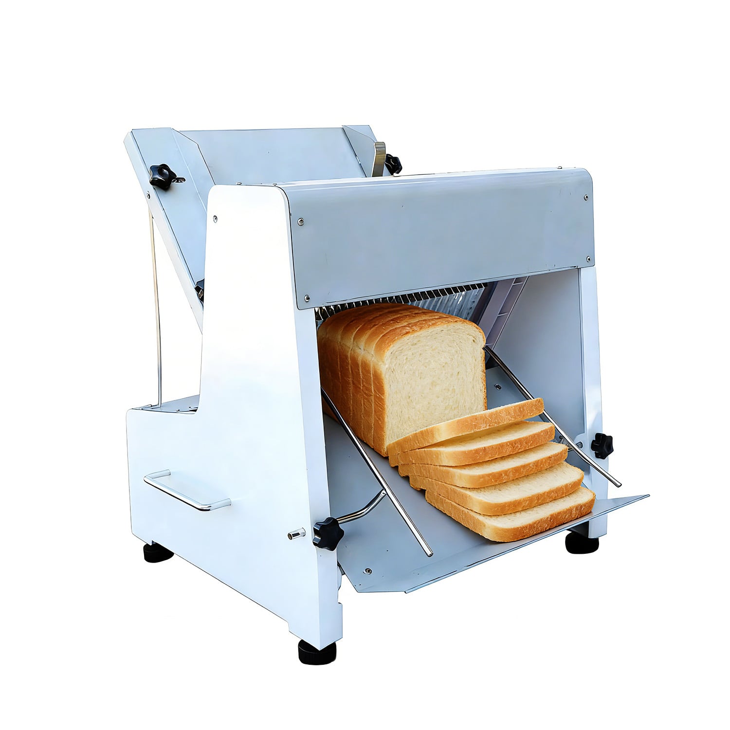 Esta unidad corta una hogaza entera en 31 piezas simultáneamente, reduciendo significativamente el tiempo de preparación durante las horas punta del desayuno o el almuerzo. El mecanismo sujeta el pan con firmeza, evitando que se aplaste o se rompa, incluso con hogazas de pan blanco suave o variedades integrales más densas.