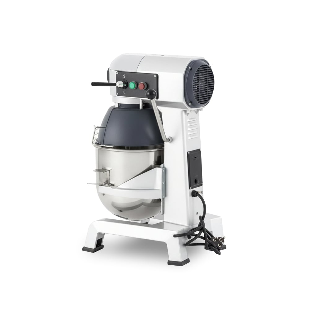 The EC20 combines a durable gear transmission with an 1100W motor to support demanding bakery and culinary applications. Its compact footprint (542x445x740 mm) fits into limited spaces while delivering the power required for bread dough, cake batter, and whipped cream. This mixer provides a reliable solution for commercial establishments requiring consistent output and operational safety.
