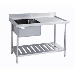 Two separate basins allow staff to wash and rinse simultaneously. This separation keeps soapy water away from clean dishes, speeding up the turnaround time for plates and utensils. Kitchen workers can soak baked-on grease in one sink while actively scrubbing pots in the other.