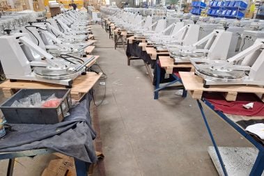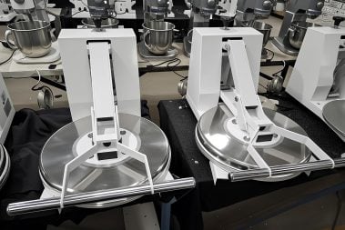 The 18-inch diameter surface accommodates extra-large family pizzas. Beyond standard pizza, this press handles tortilla, pita, and focaccia dough effectively. The plates feature a surface that prevents dough from sticking or tearing, ensuring a clean release and speeding up the production line.