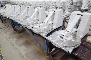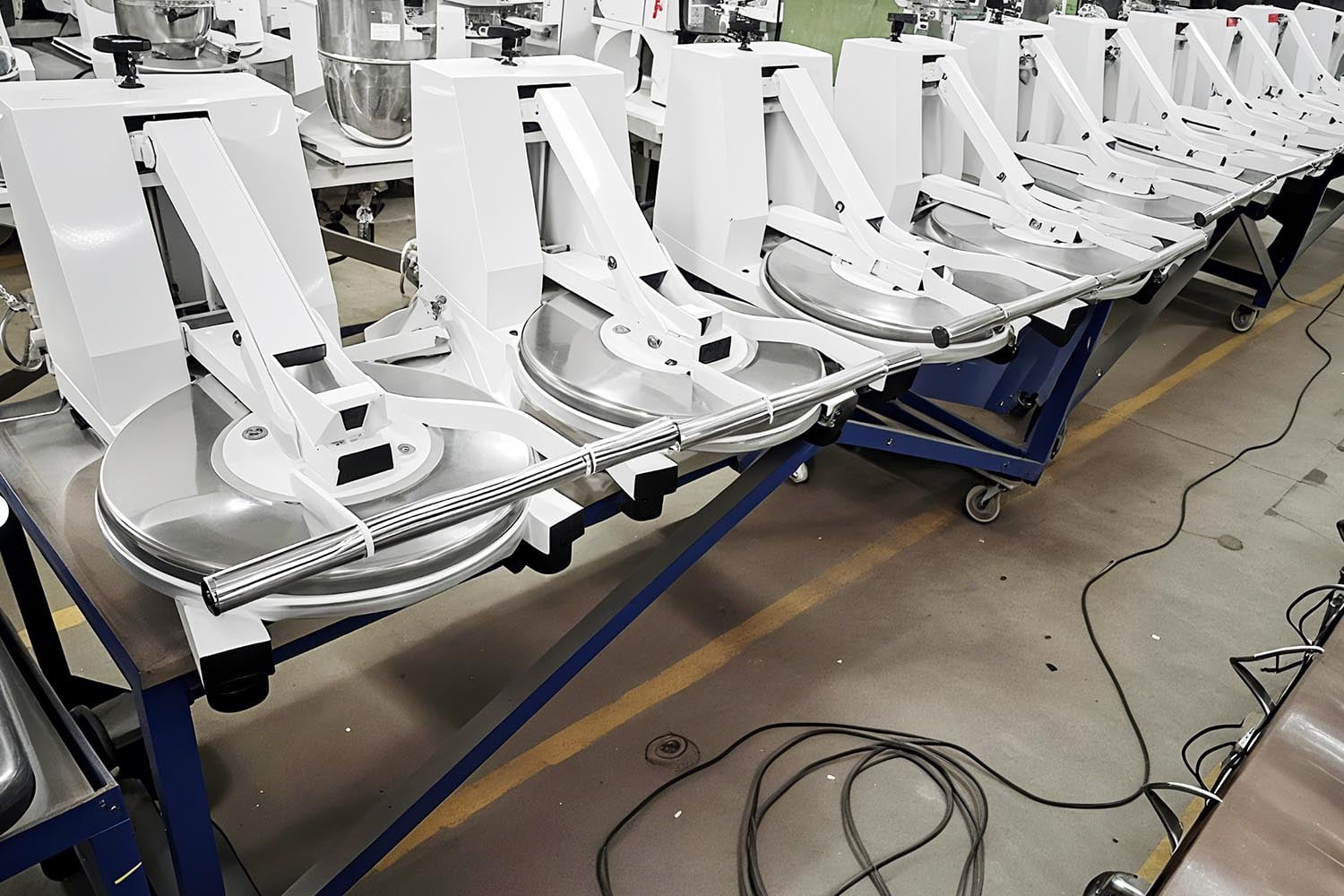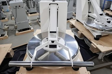 A control dial enables chefs to set the specific gap between the upper and lower plates. This precision allows for the production of various crust styles, from thin Roman-style bases to thicker American crusts. Maintaining consistent thickness ensures even baking times across all pizzas, standardizing quality and reducing food waste.
