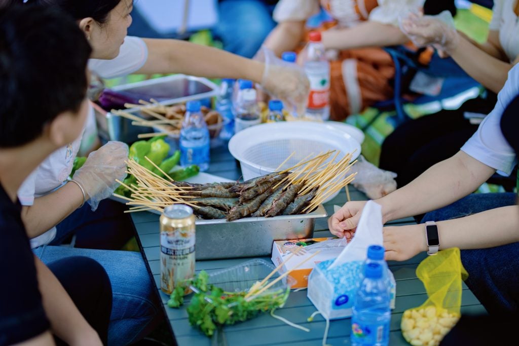 Instead of going to a restaurant to eat, we chose to prepare everything ourselves, including food and BBQ grills. It was a natural and comfortable way to spend time together and bond with our colleagues.