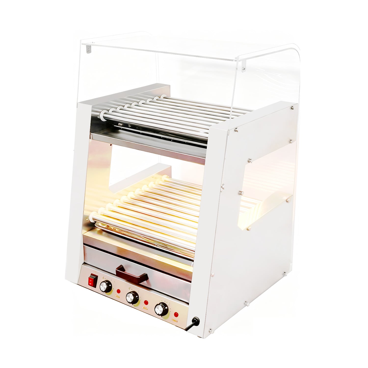 Each layer has multiple rotating rollers. They hold hot dogs securely and rotate them slowly, ensuring even cooking on all sides. The dual – layer setup lets you cook and keep many hot dogs ready at once, boosting service efficiency to meet high customer demand, whether during quiet or peak hours.