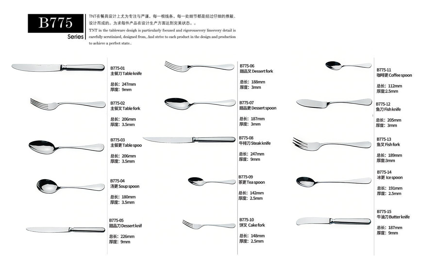 Stainless Steel Flatware Set – Knife, Fork and Spoon B775 SERIES