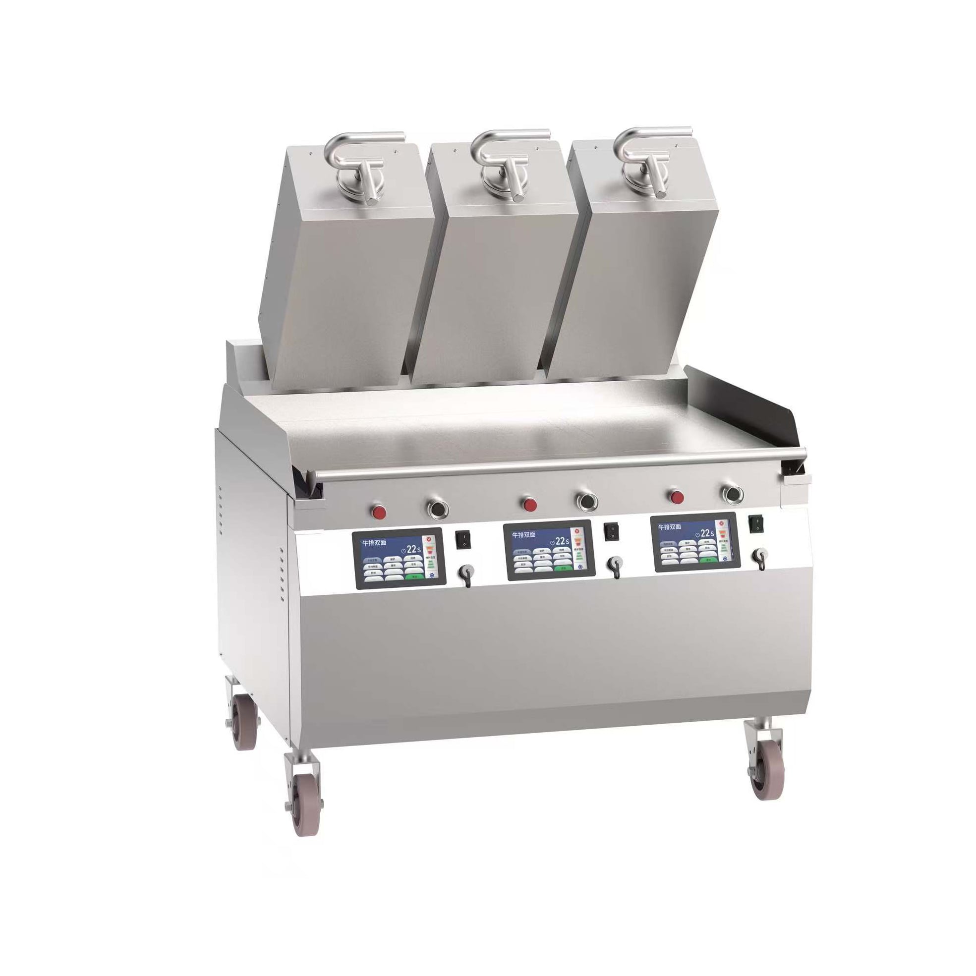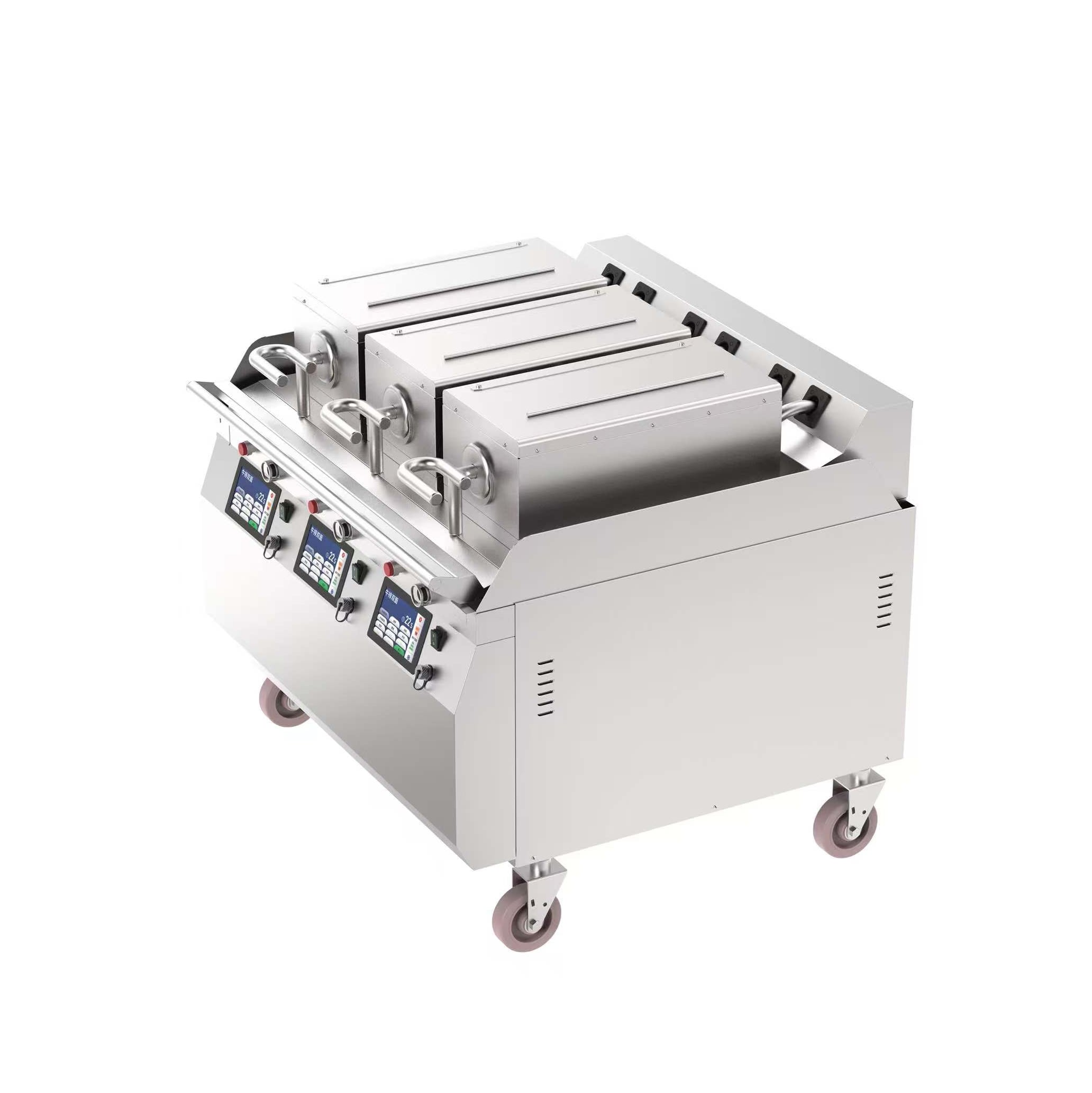 Chefs can adjust the heat between 50°C and 300°C to suit various ingredients, from delicate vegetables to thick meat cuts. The stable thermal regulation prevents temperature drops when cold food hits the plate. This control allows kitchen staff to achieve specific doneness levels, such as medium-rare steaks or fully cooked chicken breasts, with reliability.